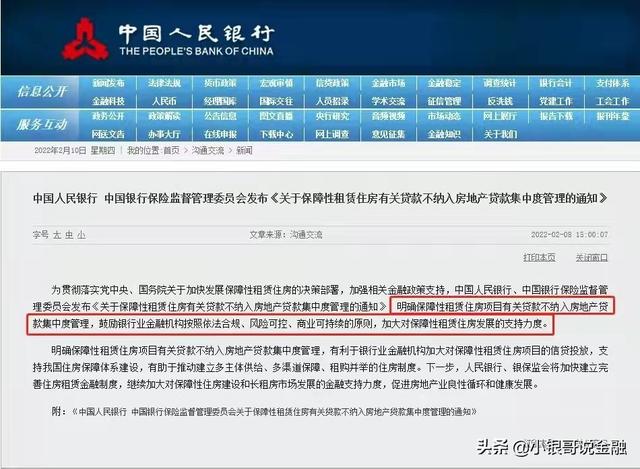 2022年春节假期结束后的第二天,央行和中国银保监局就联合发布了《关于保障性租赁住房有关贷款不纳入房地产集中度管理的通知》,那么也就意味着今后,保障性租赁住房方面的贷款,将不再受到贷款集中度管理的相关规定限制了。