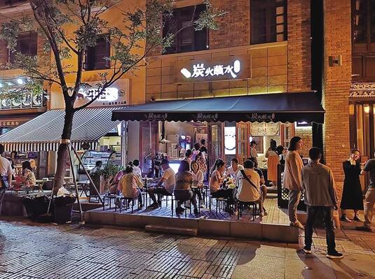 21时,小郡肝串串香店里挤满了顾客。店老板张先生说:“晚上六点之后,店里客人比较多,尤其是周末更是客人剧增,已经忙不过来了。打算再增加人手,并将营业时间延长到晚上十一点。”据张先生介绍,刨除人力和运营成本后,店内夜间收益为总收益增加了百分之十,为了吸引更多顾客夜间消费,还专门推出了晚上十点之后进店全场打八五折优惠的活动。