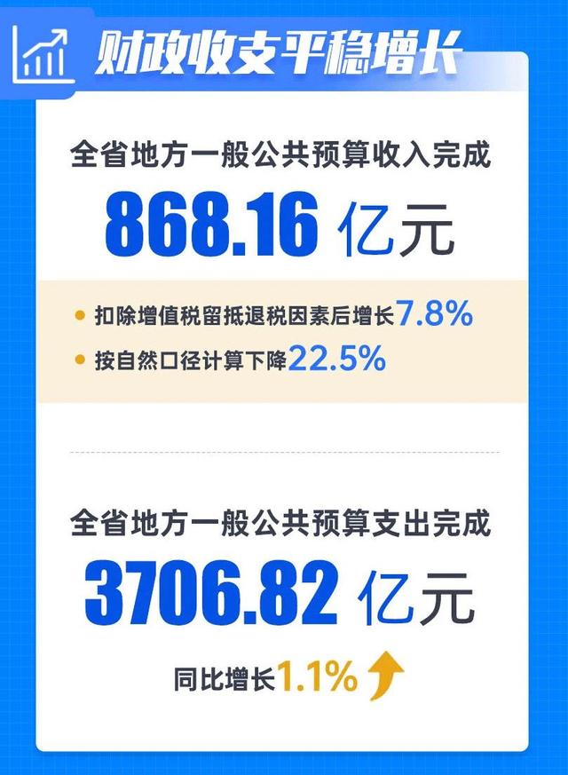 全省地方一般公共预算支出完成3706.82亿元,同比增长1.1%。其中,交通运输支出451.22亿元,增长12.4%;教育支出590.11亿元,增长3.3%;农林水支出474.41亿元,增长2.4%;科学技术支出33.93亿元,增长27.9%。