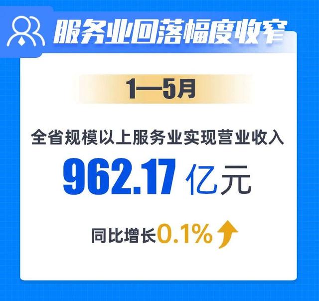 1—5月,全省规模以上服务业实现营业收入962.17亿元,同比增长0.1%,比1—4月回落0.2个百分点。