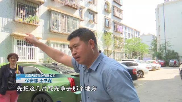 云南天闻物业有限公司 保安部 王书谋:“现在这个瓦进不到(货),才想了这个办法。先把这几片瓦先拿去那个地方,把那个地方先盖起来,给他们有个可以在的地方。等到回头有瓦了,再拿过来这里补上去,是这么个意思。”