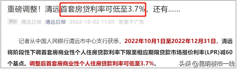 比如广东清远,人民银行清远市中心支行发布消息,从今年10月1日至12月31日阶段性下调首套利率,由“LPR减20个基点”调整为“LPR减60个基点”,最低利率降至3.7%。