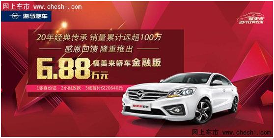 福美来这颗车坛长青树,历经20年超4代蜕变,超百万家庭的选择信赖,其一代胜过一代的产品力有口皆碑。此次福美来轿车金融版的上市,是福美来为感恩百万家庭用户20年风雨相伴的诚意回馈,市场指导价仅6.88万元。