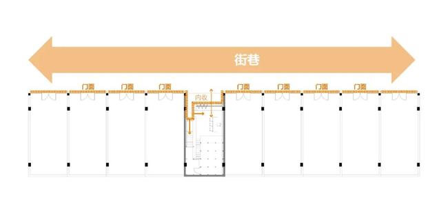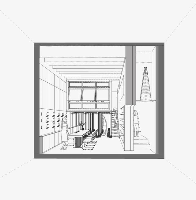 在这三层嵌套空间体系中,第一层次是5.2×11.6×5米的原始店铺单元,是从街巷进入茶空间的第一界面。