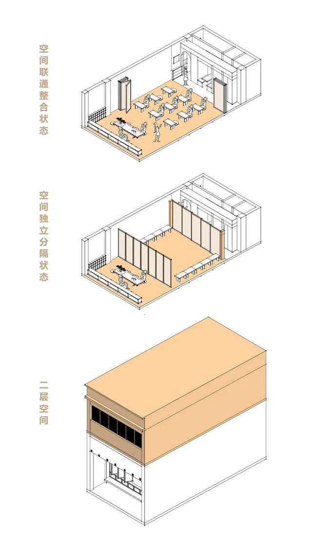 △ 二层空间在不同隔断状态下的使用模型拆解 ©空崆建筑