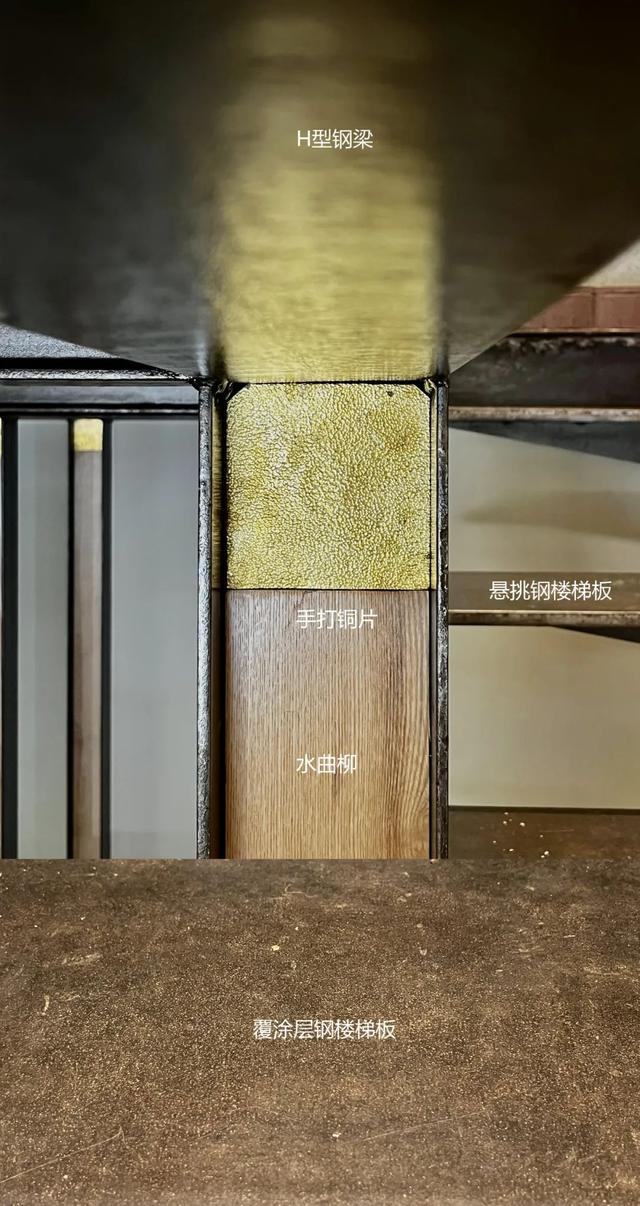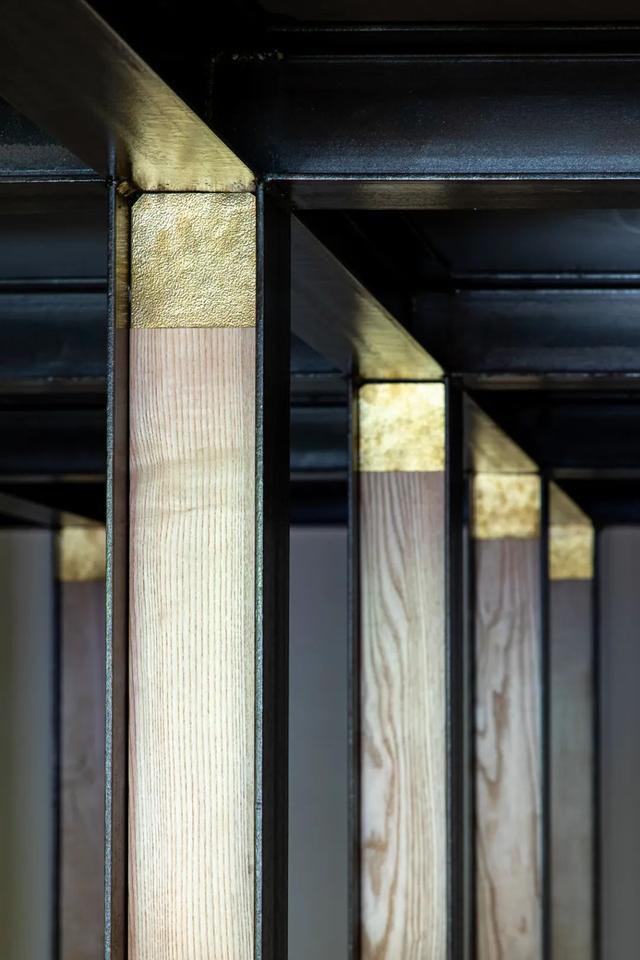△ H型钢柱木板饰面及柱头铜片 ©唐徐国