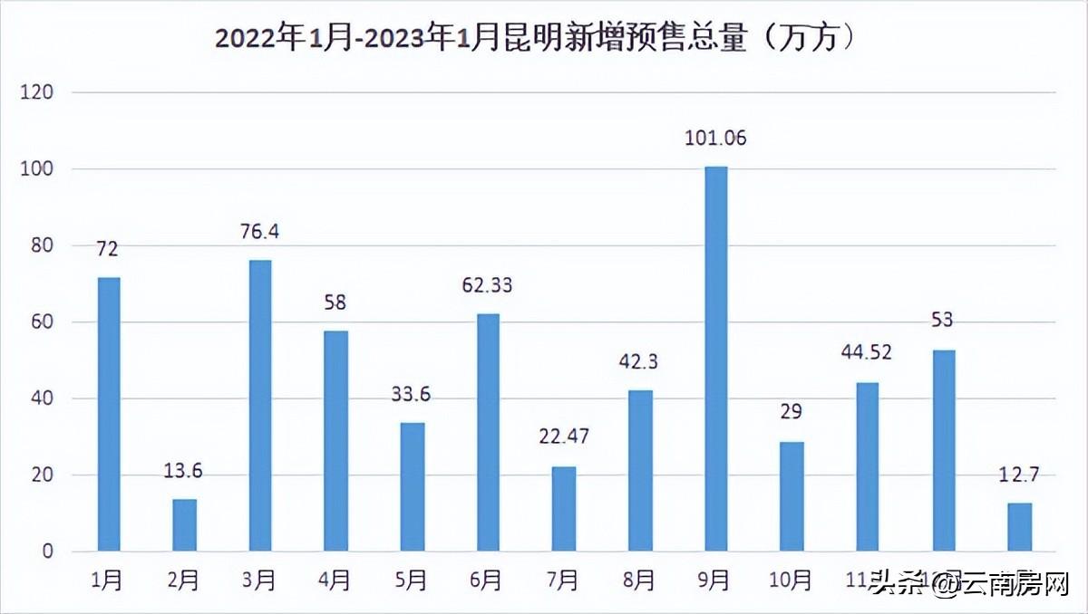 去年至今年1月昆明主城新房供应量(数据来源:昆明房产信息网、呈贡房产信息网)
