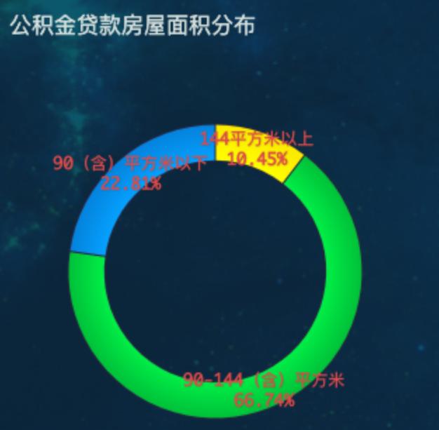 本年度贷款职工中,购房建筑面积90(含)平方米以下占22.81%,90-144(含)平方米占66.74%,144平方米以上占10.45%。
