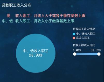 本年度贷款职工中,中、低收入占98.99%,高收入占1.01%。