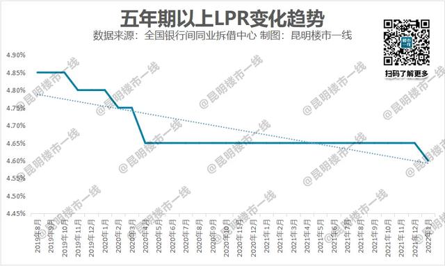 LPR自2019年8月推出以来,5年期以上累计下调4次,至2022年1月降至4.6%。