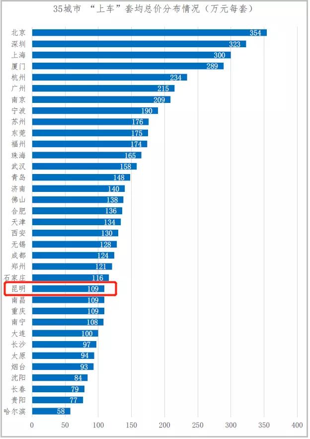 放眼全国来看,昆明刚需上车门槛也相对较低。