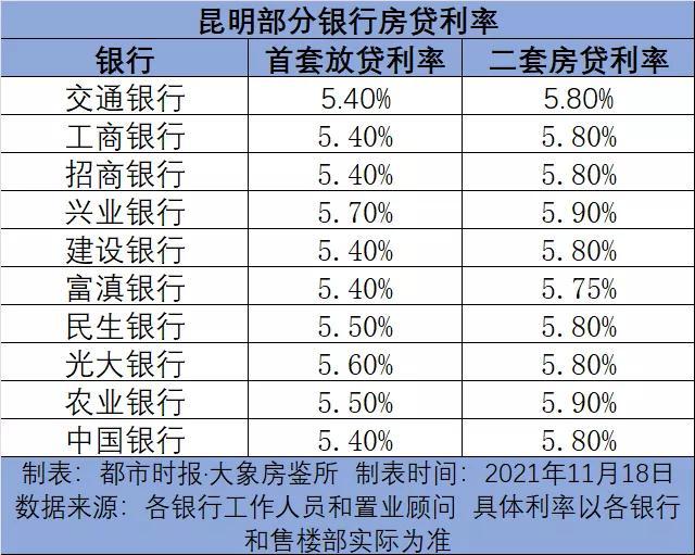 今年2月份,昆明多家银行房贷利率普遍上调。当时,记者走访的8家银行房贷利率都突破了5%,当时首套房利率基本在5.15%—5.3%之间,此后利率一路上调,5月底,昆明首套房贷利率全线突破5.3%,最高的甚至达到6.15%。