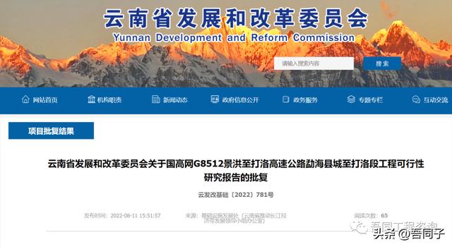 2022年8月11日,云南省发展和改革委员会网站发布“关于国高网G8512景洪至打洛高速公路勐海县城至打洛段工程可行性研究报告的批复”。