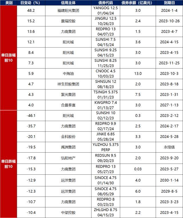 【内容摘要】周四(9月29日),银行间流动性整体较宽松,隔夜利率DR001跌破1%;银行间主要利率债收益率多数上行;云南康旅推动债务优化,新鸿基地产旗下上海国金中心获批发行110亿储架规模2.85%绿色债,远洋资本拟对旗下一笔10月25日到期的美元债寻求展期,旭辉集团公告澄清经营业务正常推进,有序安排各项融资和还款工作;海外方面,10年期美债收益率上行4bp至3.76%,欧债收益率普遍上行。