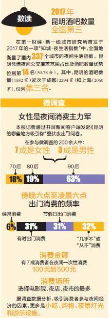 “我印象中,昆明的夜间经济,本地人多选择去酒吧、KTV这些带有娱乐性质的地方,还有人跳广场舞、去翠湖夜跑,而我自己也每天都去健身房。”任薇薇说,“但我觉得,昆明的夜间经济没有规模效应,比如酒吧、宵夜没有一个聚集地;作为旅游城市,昆明没有类似南京的夜游秦淮河、杭州的西湖夜景那样针对游客开发的夜间经济。”