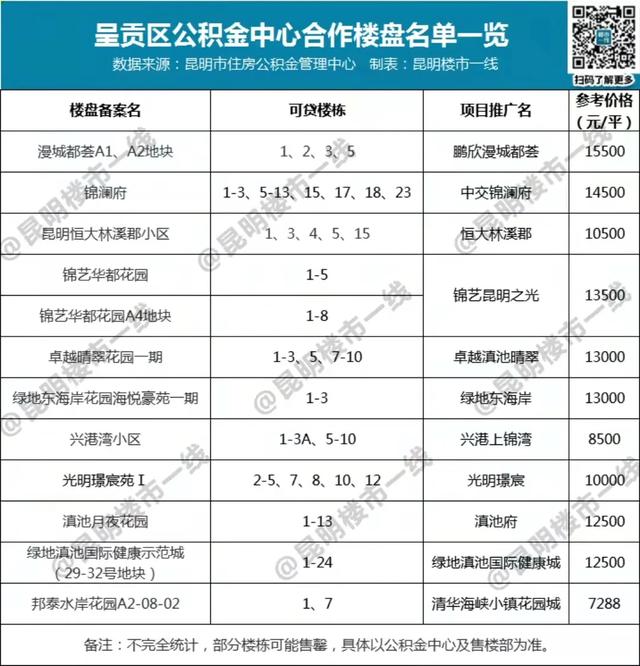 昆明主城6区最全公积金贷款楼盘名单出炉,收藏帮你狂省20万!