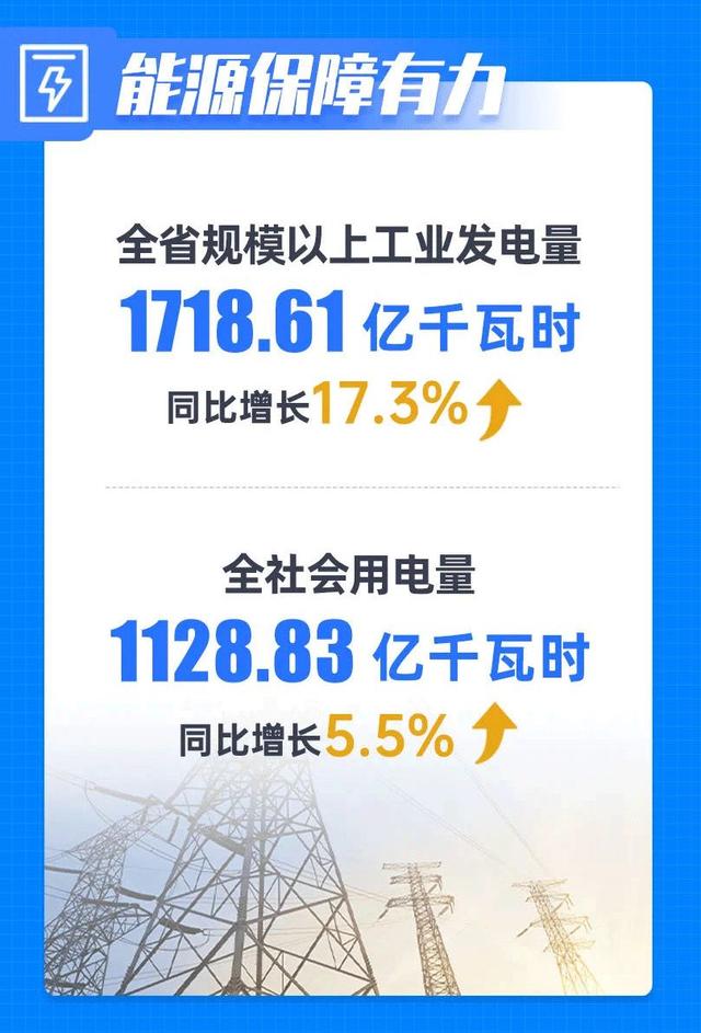 用电量平稳增长。全社会用电量1128.83亿千瓦时,增长5.5%,其中工业用电796.74亿千瓦时,增长7.7%。