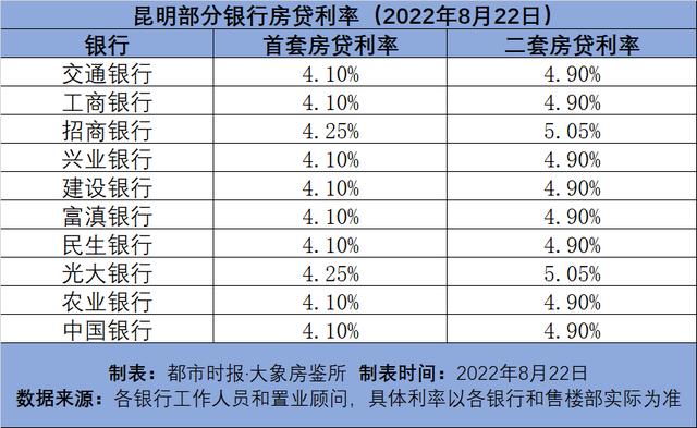 那么,昆明市场上已经按照最新房贷利率执行了吗?根据记者了解的情况,昆明目前至少已有8家银行执行最新房贷利率,即首套最低4.1%,二套最低4.9%。