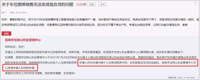 关于这个问题,11月4日,昆明市住房公积金管理中心回复网友称:申请人符合申请办理个人住房贷款条件的,在扣除购买车位的金额后,昆明市公积金中心可以受理申请人的贷款申请。