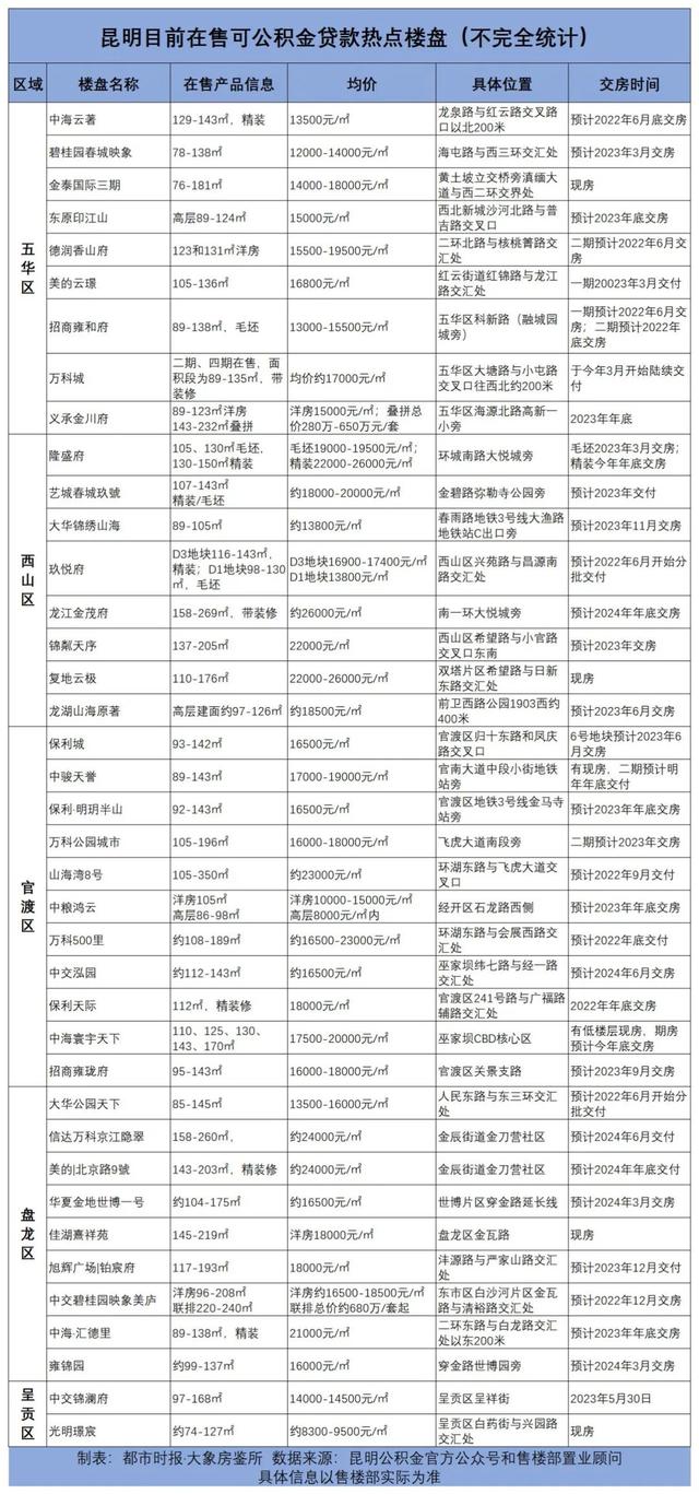 需要注意的是,整理的这些楼盘只是一部分,并非昆明楼市上所有的可用公积金贷款购买的楼盘。具体情况以售楼部消息为准。
