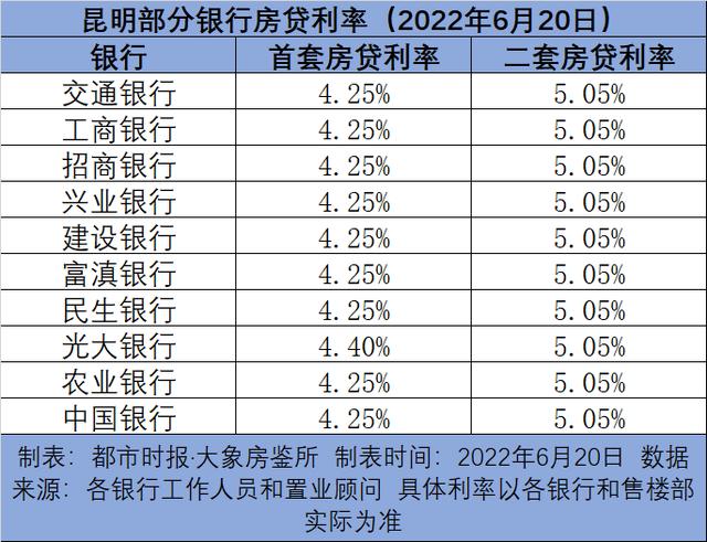 据了解,目前,昆明至少有9家银行首套房贷利率最低为4.25%。