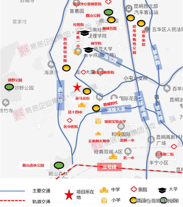 招商蛇口·雍和府位于滇缅大道与昌源北路交汇处,是昆明主城区与西北新城交汇的门户,从板块划分来说,属于高新西区黑林铺片区。